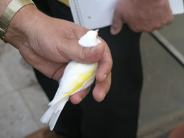 Il cardellino bianco che il negoziante, paolo cursale, custodiva gelosamente in una gabbia.