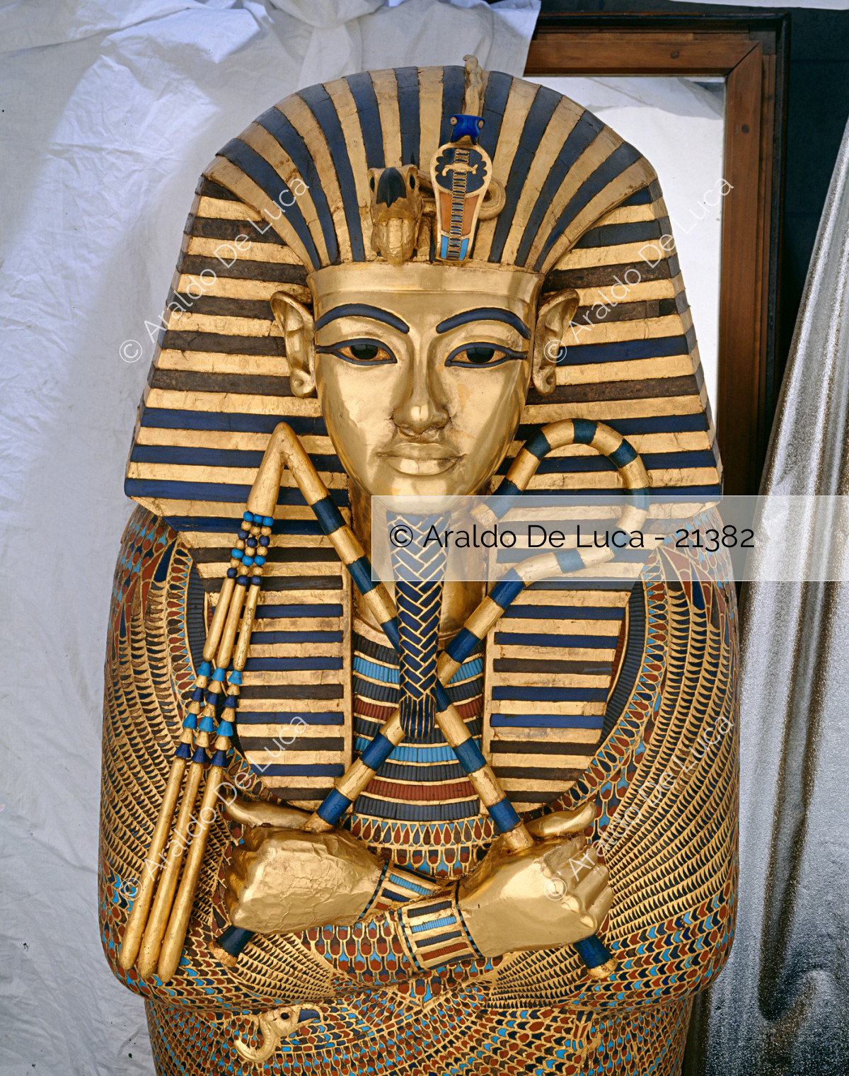 La restauración del sarcófago dorado del faraón tutankamón comenzó por primera vez desde su descubrimiento en 1922 foto: Una vez renovado, será expuesto en una muestra única en el gran museo egipcio. Scarica tutte le foto e usale anche per progetti commerciali.