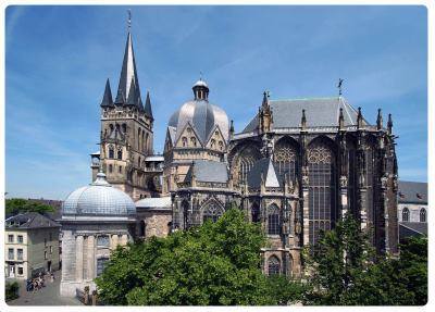 Centro storico medievale, città eletta di carlo magno, con la cattedrale del 700 da lui fatta costruire e nella all'alba le due costruzioni principali di aquisgrana rivelano le loro forme slanciate gotiche.