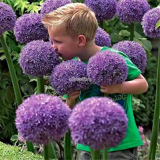 Foglia gigante dell'orecchio di elefante. Purple sensation della famiglia alliaceae,pianta bulbosa alta circa 80/90 cm,fiore rotondo dal colore vivace rosso/rosato ,foglia verde lanceolata. Aglio o allium ampeloprasum varietà ampeloprasum. 30 semi viola e 30 semi bianchi.
