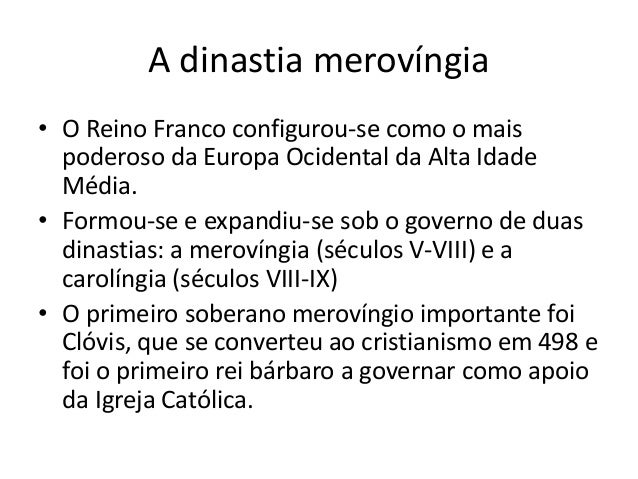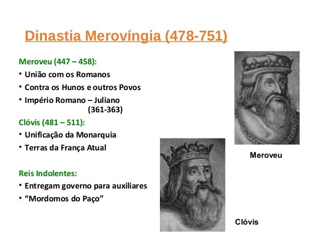 La dinastía merovingia fue una familia de estirpe germánica que gobernó la actual francia, bélgica, una parte de alemania y de suiza entre los siglos v y. In the merovingian dynasty that leader was clovis i whose reign may have overlapped the end of the 5th century ad and the beginning of the 6th. From wikimedia commons, the free media repository. Jump to navigation jump to search.