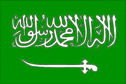Pics. La bandiera dell'arabia saudita è verde con al centro una scritta sotto la quale campeggia una spada. No hay más dios que alá y mahoma es su profeta y una espada.