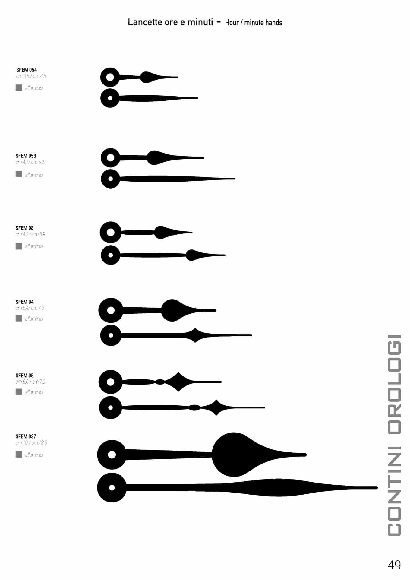 Le lancette per orologi vengono vendute in coppia ora+minuto mentre quella dei secondi in plastica o in metallo è fornita a parte, a scelta.