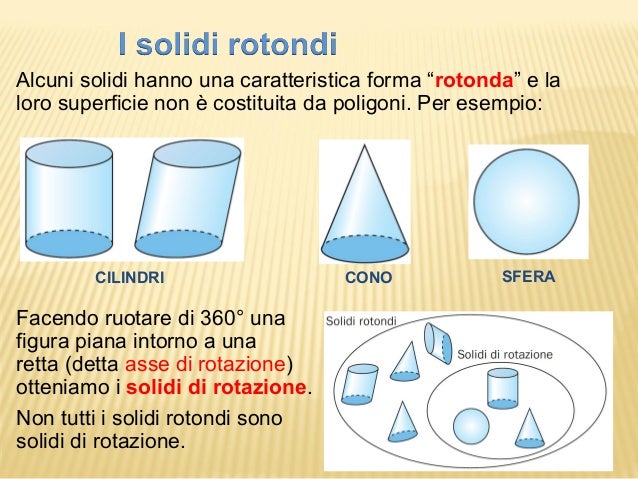 I solidi di rotazione sono solidi rotondi che si possono ottenere facendo ruotare una figura piana. La sfera è l'unico solido geometrico senza angoli ne spigoli. Il peso reale di ogni sfera in acciaio può avere un.
